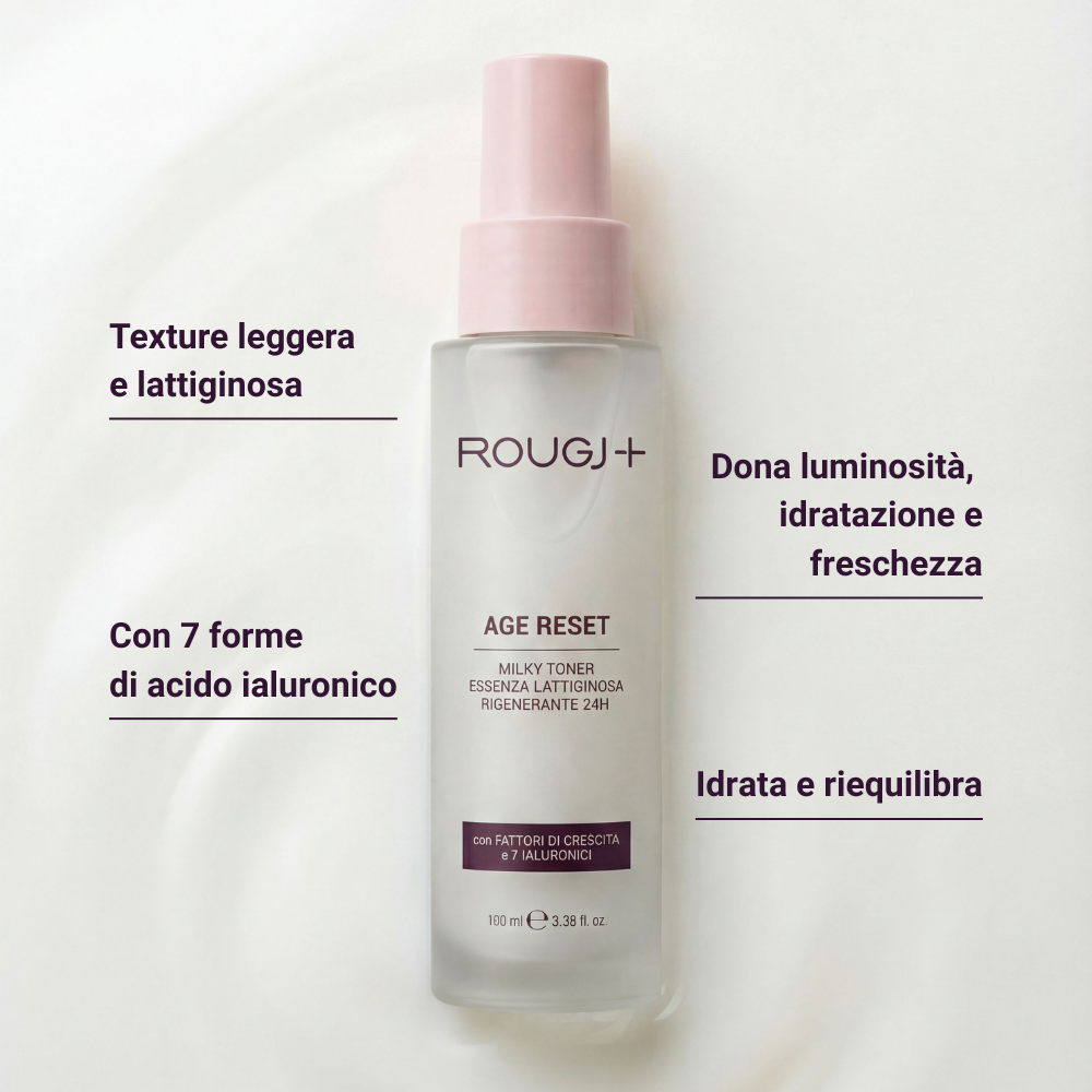 Age Reset Milky Toner è l’evoluzione del siero e il primo gesto rigenerante della routine, un’essenza lattiginosa adatta a tutti i tipi di pelle che risveglia la pelle e la prepara a ricevere il meglio dai trattamenti successivi.